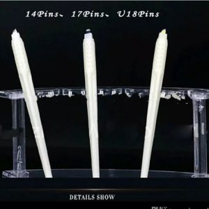50pcs permanent makeup white disposable microblading pens with 7/12/14/17/18u pins needles embroidery blades ing
