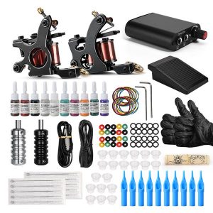 Complete Tattoo Kit Coil Tattoo Machine Set Tattoo Power Supply Needles Professional Machine Kit for Beginner StarterScou