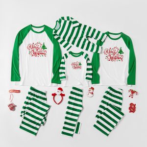 Merry Christmas Tree Print Top and Stripe Pants Family Matching Pajamas Set