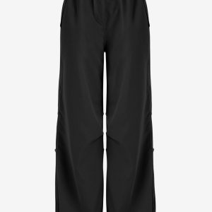 Toggle Drawstring Mock Button Parachute Pants S Black