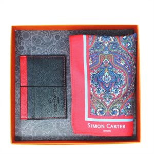 $63.54Quick View100% silk Simon Carter branded pocket square with a vivid red border put together with our classic 100% leather red strip credit card holder. This set is presented in a Simon Carter cinnamon box.