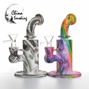 Silicone Water Pipe 6.2 inch Glass Bong with glass bowl Oil Rigs With Pictures Food Grade Silicone bongs