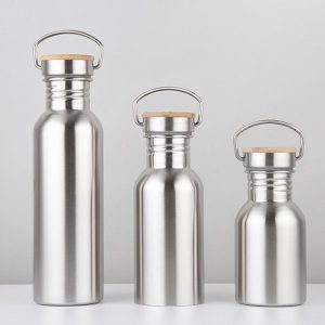 Stainless Steel Water Bottles Steel/Wooden Cover Silver 350/500/750ML High-capacity Sports Kettle 1Pcs Nice Gifts Portable