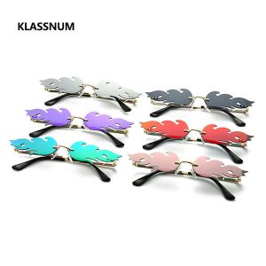 KLASSNUM Luxury Fashion Fire Flame Sunglasses Rimless Wave Sun Glasses Metal Shades For Vintage Women Mirror Eyewear UV400
