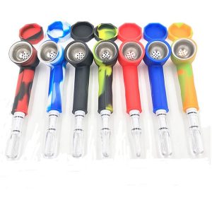 Smoking Pipe Portable Silicone Hand Pipe Colorful Cigarette Tobacco Pipe with Smoke Glass Bowl Smoking Accessorie DHL Shipping