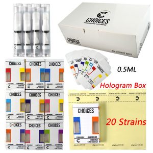Choices Vape Carts Hologram Box Vape Cartridges Packaging 0.5ML Ceramic Coil Full Ceramic Press On Tips Pyrex Glass Tank Atomizer 510 Thread