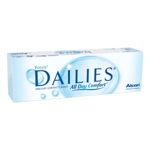 $15.95Quick ViewMade using the Lightstream Technology, Focus Dailies All Day Comfort contact lenses have a thin edge, which makes them easy to insert and comfortable to wear. Their surface design reduces protein build ups, ensuring maximum hygiene and allowing more oxygen through to the front surface of the eye. This provides long-lasting comfort and relief to dry eyes. Focus Dailies All Day Comfort contact lenses are designed for daily wear: they need to be replaced with a fresh pair every day, and do not require a daily cleaning and storage routine. Contact lens type: Daily disposable soft contact lenses. Manufacturer: CIBA Vision. Material: 69% Water, 31% Nelfilcon A. Handling tint: Edge to edge, light blue Visitint. UVA and UVB protection: Not specified. Usage instructions: Daily wear, single use. Please replace with a new pair every day. Sold by Specsavers as Daily Opsys