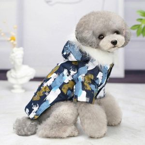 Dog Apparel Printing Puppy Winter Hooded Coat Pet Outfit Pure Cotton In Protect Clothes For Cat Clothing Supplies