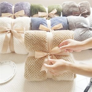flannel fleece blanket cream camel smoke blue size light weight cozy plush microfiber solid weighted blanket japan style