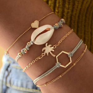Five-piece Heart Cowrie Shell Palm Tree Chain Bracelet Set