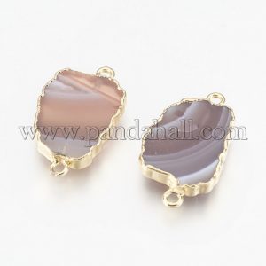 $16.22Quick ViewNatural Agate Links/Connectors, with Brass Findings, Nuggets, Golden, Size: about 14mm wide, 23mm long, 3~3.5mm thick, hole: 1.5mm.