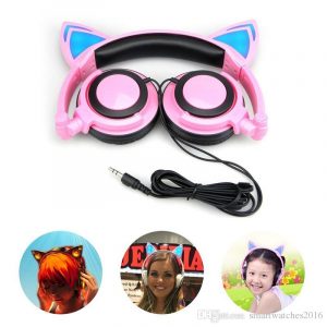 Foldable Flashing Glowing Cute Cat Ear Headphones Gaming Headset Earphone with LED light For PC Laptop Computer Mobile Phone
