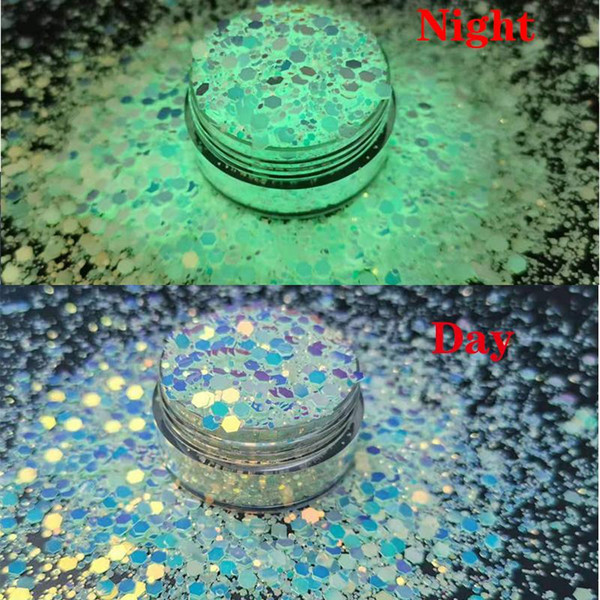10g/Bag 0.2/1/2mm Mix Glow in the Dark Iridescent Chunky Glitter For Nail Art 3 Size Glow InThe Dark Nail Art Glitter 2Colors