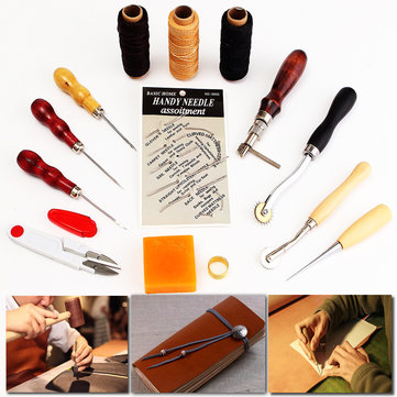 14Pcs Leather Craft Tool Set Tools Kit Hand Stitching Sewing Thread Awl Thimble