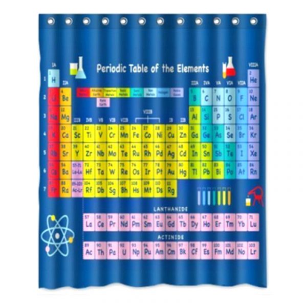 Specification:Material: PolyesterPattern: Periodic Table of ElementsSize (L*W): 180x180cmFeatures:- Made of waterproof and mildew-resistant polyester fabric for long-lasting use and good looks.- Can serve as a simple and understated shower curtain by itself,with updated periodic table of elements names and symbols patterns.- The Periodic Table Shower Curtain is a perfect gift for chemistry students, teachers or a geeky friend. It can add a colorful touch of science to the bathroom. Its a fun way to refresh your memory in class or a cool decoration for science fans.Package Included:1 x Shower Curtain