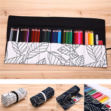36/48 Holes Canvas Wrap Roll Up Pencil Case Pen Brush Storage Bag