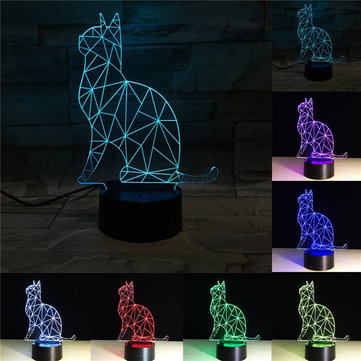 3D Illusion Bulbing Cute Cat Lamp Acrylic LED Night Light USB Table Desk Living Room Home Decor