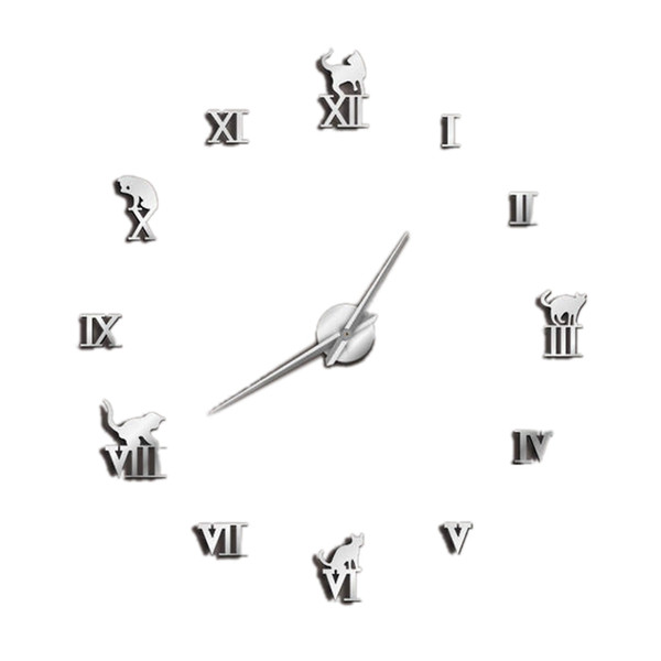 3d large wall clock diy large modern frameless home decor cat big clock mirror for bedroom living room kittens kitty wall deco