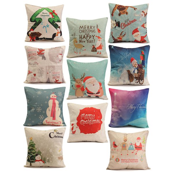 45X45cm Christmas Fashion Cotton Linen Pillow Case Santa Claus Snowmen Gift Home Decor