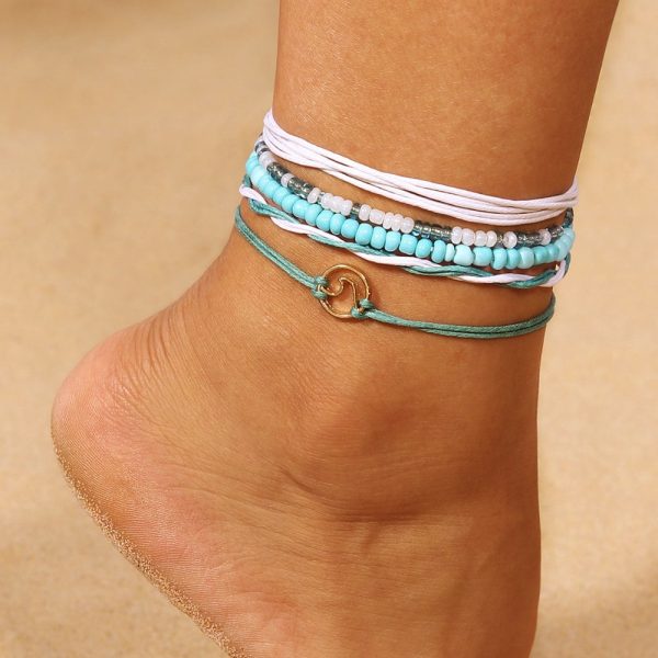 5 PCS/Set Bohemian Wave Beads Set Women Vintage Handmade Stretch Anklet