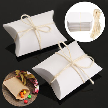 50Pcs White Pillow Favor Candy Boxes Kraft Paper Gift Box Wedding Party Birthday Gift Packing Bags