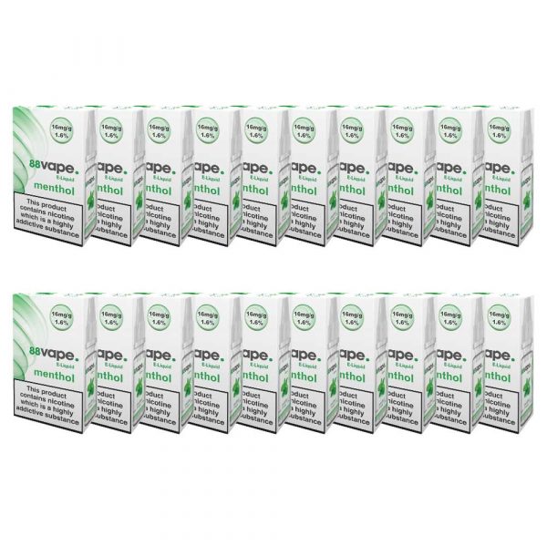 Get massive savings with this bulk box of 20 bottles. UK made with 100% organic and natural ingredients, this e-liquid features 16mg nicotine content.Every 88Vape bottle is made with a long plastic nip, so it’s easier to fill your clearomizer and start vaping.What’s included 88Vape E-Liquid 16Mg Menthol 10ml – 20 pack