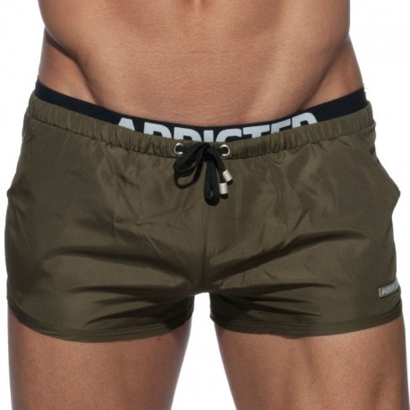 Low-rise mini swim short made from lightweight and comfortable microfiber. 2 side pockets. U-Shape inner brief made from light and quick-drying mesh for a great support and comfort. Addicted silicone logo sewn on the left thigh. Double elastic waistband with drawstring. EXCLUSIVITY for Les Dessous d’Apollon – Inderwear.