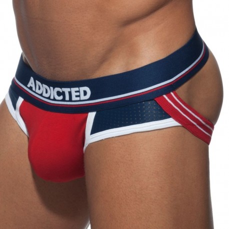 Low-rise and fitted jock made from soft and comfortable cotton. Unlined push up pouch to enhance your masculinity. Mesh yoke on each side. Contrast trim. Addicted elastic waistband. Made in Barcelona.