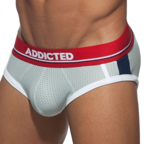 Low-rise brief made from lightweight, breathable and comfortable mesh. Very fitted cut. Sporty side stripes. Contrast trim. Addicted elastic waistband. Made in Barcelona.