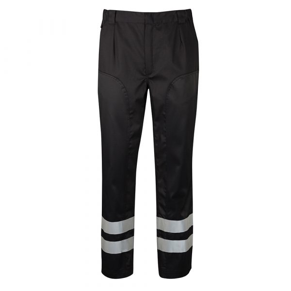 Zip fly with button waist Two side pockets Side elasticated waist Two back welt pockets Pleat front and belt loops 245gsm 65% polyster/35% cotton Up to 60° wash Reinforced panels 50% cotton/50% nylon Inside legShort (S) 29ins Regular (R) 32ins Tall (T) 34ins Extra tall (A) 36ins Waist sizes 28 – 54ins