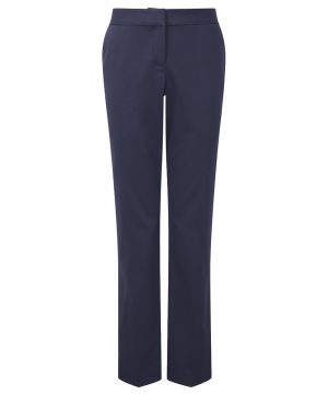 Slim leg Flat front Two hip pockets Two mock back pockets Concealed hook and bar front fastening Half front leg stretch lining 190gsm 54% polyester/44% wool/2% elastane Up to 40 deg Sizes 6 – 26 Inside leg: Short (S) 29ins Regular (R) 31ins Tall (T) 33ins Extra Tall (A) 36ins