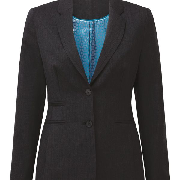 Two button fastening Two shaped pocket flaps One internal jet pocket One internal welt pocket Fully linedContrast jade jacquard lining Distinctive internal contrast piping and sleeve lining 190gsm 54% polyester/44% wool/2% elastane Up to 40 wash Sizes 6-26 Lengths: Short (S) Regular (R) and Tall (T) Back length: S 51-61cm R 56-66cm T 61-71cm (increases with size) Sleeve length: S 57-62cm R 61-66cm T 65-70cm (increases with size)