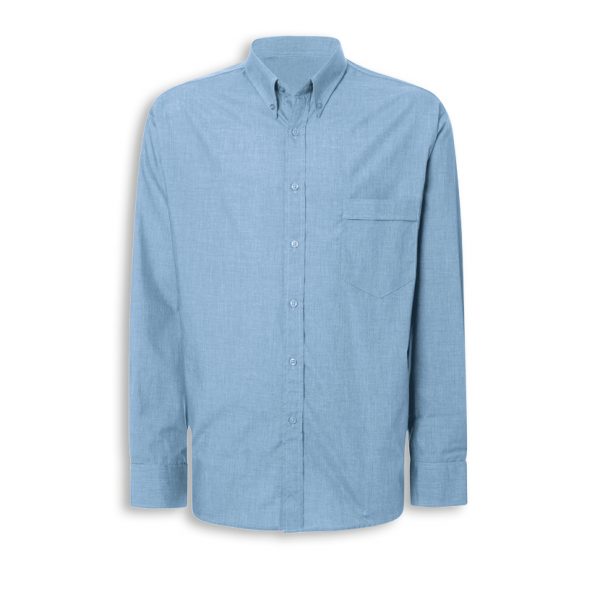Button down collarChest pocketLong sleeves with button cuffs100gsm 65% polyester/35% cottonUp to 40 washSizes 14.5 – 20insBack length 78.5cm