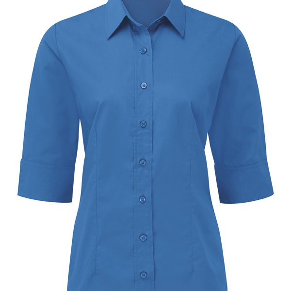 Semi-fitted feminine fit Classic collar 3/4 sleeves with vents and option to turn back 100gsm 65% polyester/35% cotton Up to 40 wash Sizes 6-26 Back length: 65-75cm (increases with size)