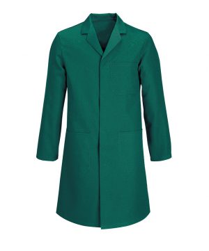 Concealed stud frontOne chest pocketTwo hip pocketsBack vent245gsm 65% polyester/35% cotton (210gsm white) Up 60 degree wash in line with infection control guidelinesSuitable for industry laundrySizes: 92 – 140cm chestLength 100cm / 39ins