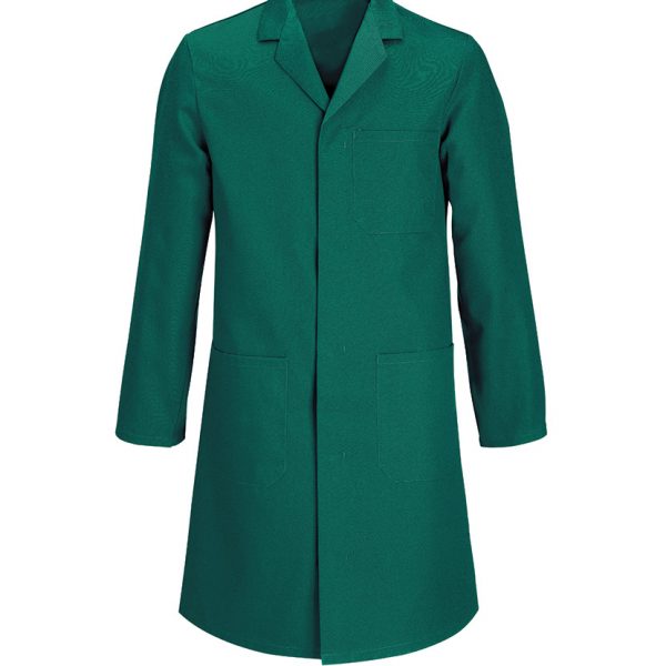 Concealed stud frontOne chest pocketTwo hip pocketsBack vent245gsm 65% polyester/35% cotton (210gsm white) Up 60 degree wash in line with infection control guidelinesSuitable for industry laundrySizes: 92 – 140cm chestLength 100cm / 39ins