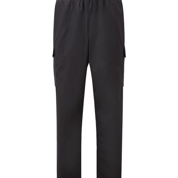 Unisex fit Wide stretch jersey waistband Jersey side hip panels for increased comfort and ease of movement Two side hip pockets Two side leg cargo pockets with pocket flaps Pen and mobile phone pockets on left hand side cargo pocket One rear patch pocket Tea towel loop with stud Main fabric: 195gsm 65%/35% cotton jersey waistband and panels: 340gsm 70% viscose/25% polyamide/5% elastane Up to 60° wash Sizes XS – 4XL Inside leg: Regular (R) 31ins Extra tall (A) 35ins