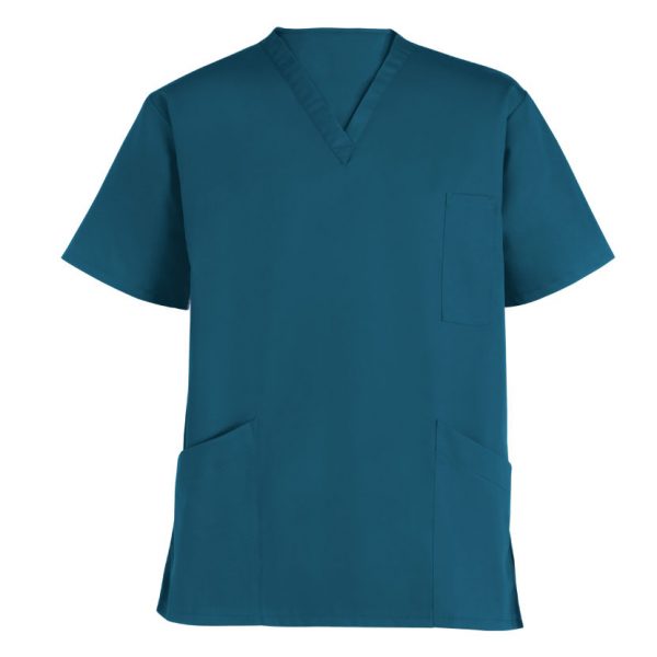V-neckTwo lower patch pocketsOne chest pocketMachine washable and industrially launderable195gsm 67% polyester/33% cotton