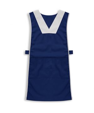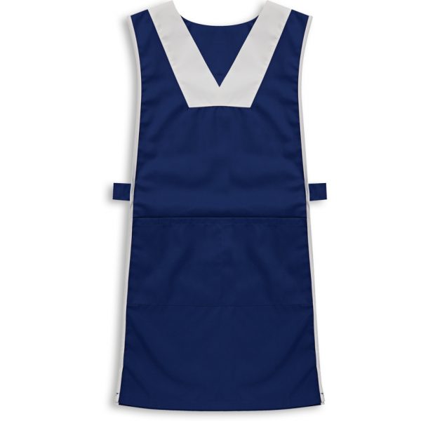 Contrasting neckline and side pipingAdjustable side stud fasteningsTwo-part pocket195gsm 65% polyester/35% cottonUp to 60° washSuitable for industrial laundrySizes S – XLLength 87cm