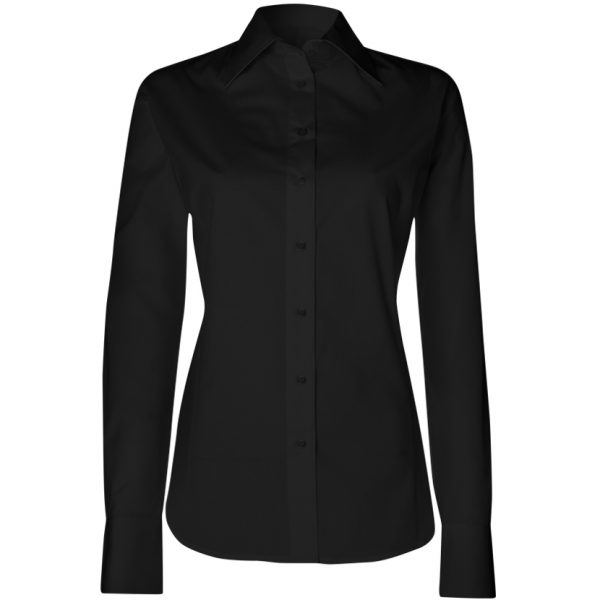 Feminine fitClassic collarThree button cuff100gsm 55% cotton/45% polyesterUp to 40 washSize 6 – 26Back length: 69 – 74cm (increases with size)