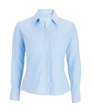 Semi-fittedOpen collar necklineConcealed button frontSide vents125gsm 70% cotton/30% polyesterUp to 50 washSizes 6 – 26Back length 66.5 – 71cm (increases with size)