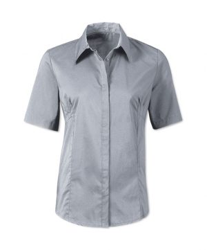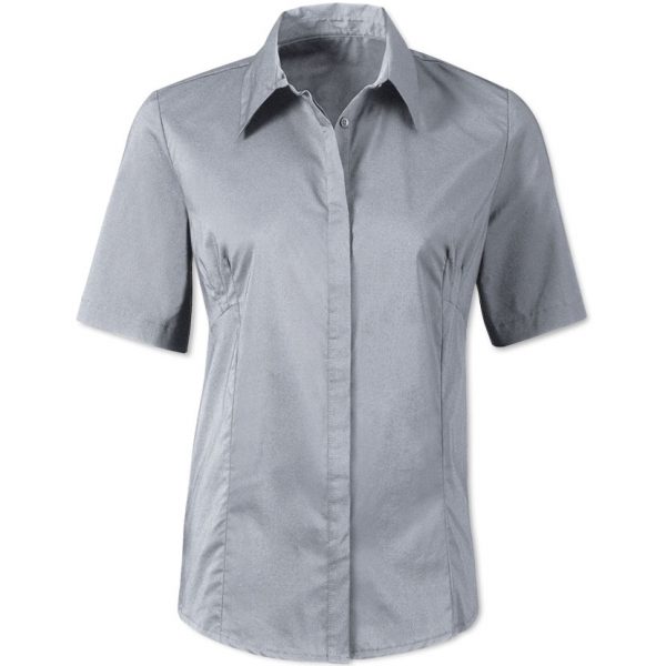 Classic collarConcealed button frontShort sleeves60% cotton/35% polyester/5% elastaneUp to 40 washSizes 8 – 26