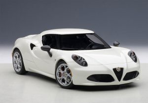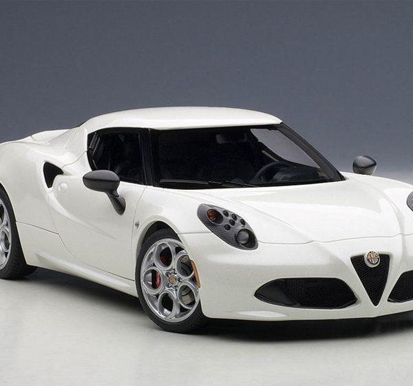AUTOart 1:18 Alfa Romeo 4C Composite Model Car 70188 This Alfa Romeo 4C 2013 is pearl white and features working wheels and opening boot with engine, doors. It is made by AUTOart and is 1:18 scale (approx. 22cm / 8.7in long).