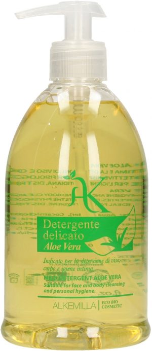 Gentle, all-over cleansing for daily use Face, body and intimate areas are gently yet effectively cleansed with the Aloe Vera Mild Cleansing Gel by Alkemilla. The skin’s own pH value is not damaged in the process. The gel supports the restoration of the skin’s protective layer. Application: Apply to wet skin, lather and rinse. free from PEG, EDTA, parabens, SLS, propylene glycol, BHT, BHA, silicone & vaseline AIAB-certified nickel, chromium & cobalt tested vegan & not tested on animals pH value: 5.5 PAO: 6 months Ingredients (INCI): Aqua [Water], Cocamidopropyl hydroxysultaine, Cocamidopropyl betaine, Sodium cocoyl sarcosinate, Sodium chloride, Glycerin, Aloe barbadensis extract (*), Calendula officinalis flower extract (*), Centaurea cyanus flower extract (*), Malva sylvestris (Mallow) extract (*), Althaea officinalis root extract (*), Sorbitol, Sodium sunflowerseedamphoacetate, Parfum [Fragrance], Sodium benzoate, Sodium dehydroacetate, Lactic acid * certified organic