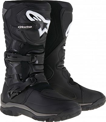 Multi-material upper chassis incorporating PU-coated leather, microfiber and suede leather for excellent levels of comfort, durability and abrasion resistance. Extensive front and lower rear accordion flex zones constructed from lightweight and durable microfiber for comfort, freedom of movement, control and support. Medial surface stamped suede panel for improved grip and protection. Innovative lateral ankle protection with biomechanical blade-link between the upper boot and the lower foot structure. TPU shift pad with specially designed patterning for improved grip. Lightweight, advanced polymer shin-plate and lateral ankle protections offer impact and resistance as well as structural support. Internal toe box and heel counter protection is layered under the upper for durability, improved feel and performance. Medial and lateral dual density ankle protector disk is subtly incorporated into boot chassis and offers strategic ankle protection. Wide-entry aperture opening of easy in and out, plus secure upper TPR and Velcro® closure system to allow for a wide-range of calf fit adjustment. Integrated soft foam surrounds ankle and collar for comfort, fit and additional shock absorption. Integrated breathable DRYSTAR® membrane for excellent all-weather performance to keep feet dry in difficult weather conditions. Breathable textile interior lining throughout boot Internal high modulus polyamide insole with integrated steel shank reinforcement for structure and support to the arch area. Midsole constructed from molded PU foam to make the boot bottom lighter without compromise performance. Highly flexible sole thread features Alpinestarsâ exclusive vulcanized rubber compound for the optimal combination of comfort and grip. Removable anatomic foot-bed includes EVA foam and Lycra® for comfort and support. Ergonomic shaping for forefoot streamlining to enable greater control of the bikeâs controls and for superior fit and comfort, wideranging foot profile.
