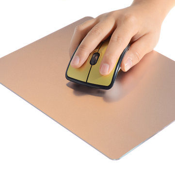 escription Material: Aluminum Color: Rose gold, Gray  Process: metal stamping Size: 28*18cm Features: * High-quality metal mouse pad, the use of aluminum production, high-end, texture * Safety rounded design, to prevent the hand was cut, safe and more at ease * Both sides are available * Anti-slip at the bottom, super-touch surface, comfortable * Waterproof, easy to clean, water can be wiped with a cloth Application: Office, home, and so on Package include: 1 x mouse pad Moer detail: