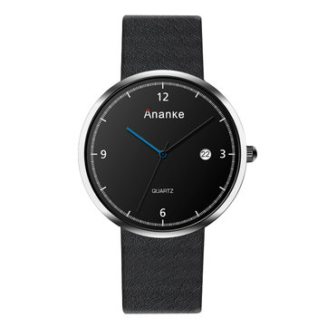 ANANKE Mens Watches Leather Band Minimalist Watches Date Display Waterproof Watches for Men