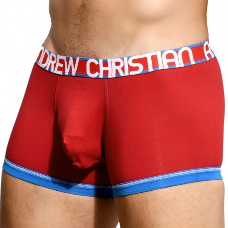 Low-rise boxer made from super soft, lightweight and comfortable cotton. Almost Naked anatomically correct pouch with fun snuggle fit. Contrast trim. Andrew Christian slimming elastic waistband. Limited Edition.