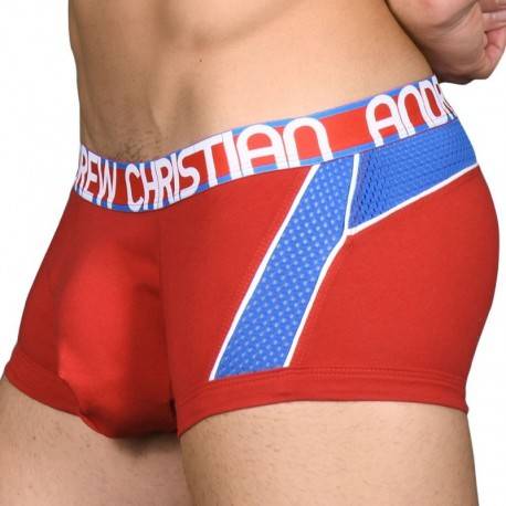 Very comfortable cotton boxer for the well endowed man. Hang-free design with no hidden cup or padding, featuring extra room in front, just where you need it. Breathable mesh yoke on the side and upper back. Andrew Christian slimming elastic waistband. Limited Edition.
