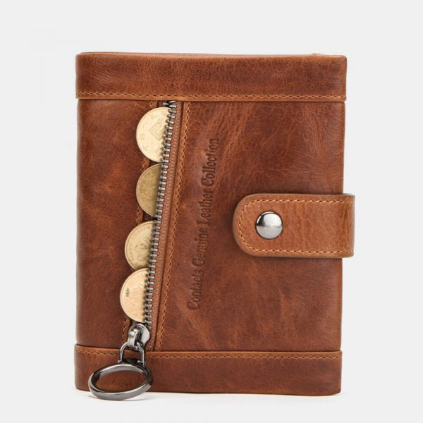 What is RFID?RFID (radio frequency identification) is a growing technology that uses radio waves to read and transfer information between devices. Personal cards that currently use this technology include credit cards, transit payment cards, and identification cards such as enhanced driver’s licenses.Why use a RFID wallet?Cards with RFID is vulnerable to scans by nearby person with RFID readers to capture information without ever physically coming in contact (similar to scanning a barcode). RFID wallets protect cards from unknown scans with the unique protective layering crafted inside the wallet lining.Benefits and Features:1.SAFETY AND SECURITY – Feel safe all the time anywhere in the world and stop stress about electronic pick pocketing.2.Sleek standard size that will fit any jeans pocket. No sharp or annoying edges.3.Good space for your cards, money, bills, driver license, photos and much more.Details:MaterialGenuine LeatherColorCoffee, Black,Brown,GreenWeight130gLength10cm(3.94”)Height12cm(4.72”)Width2.5cm(0.98”)Inner PocketCash Pocket, Zipper Pocket, Card Slots, Photo Holder, Slot PocketClosureZipperHaspPackage include:1*WalletMore Details: